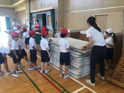 安全に気をつけながら、後ろ転がりの運動に取り組みました。