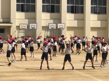 子どもたちは振り付けをたくさん覚えています。元気いっぱい運動しています。