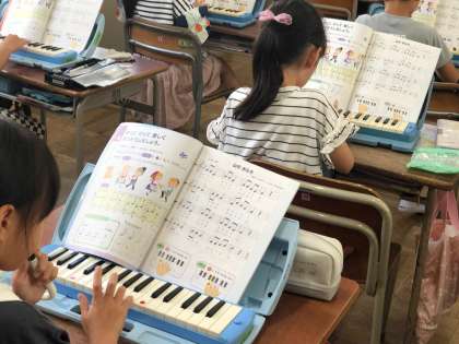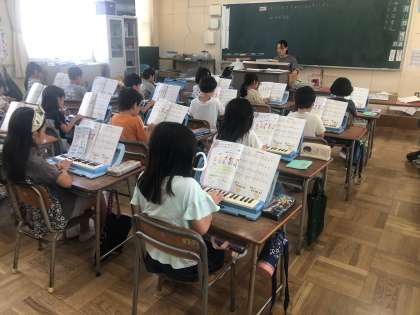 2年生の音楽は、鍵盤ハーモニカの演奏をしました。
