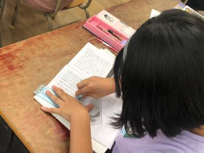 要約の学習をしています。本文の大事なところを見つけ、それをつなぎ合わせて要約しました。