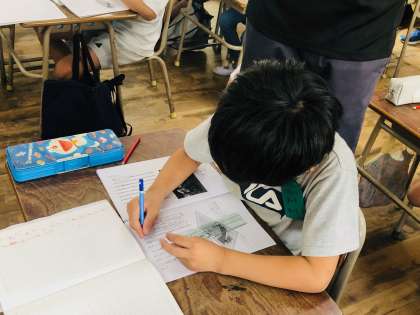 この授業は、校内の研究授業として、教員が参観し、子どもたちは集中力高く、学習していました。