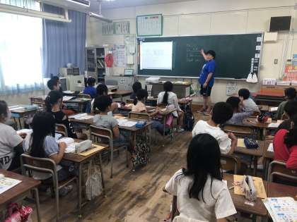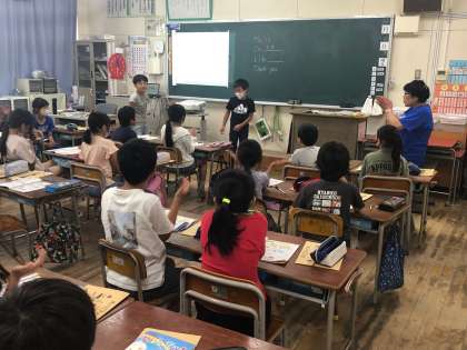 3年生の英語では、自分の名前と、自分の好きなものをみんなで紹介し合いました。