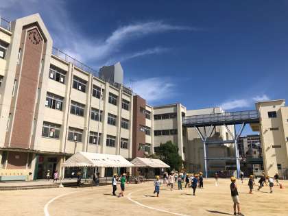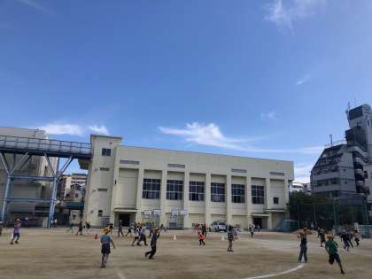 秋らしく爽快な天気です。子どもたちは運動場で元気に遊んでいます。