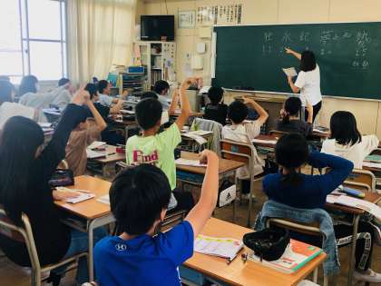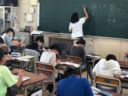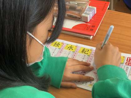 5年生ともなると、画数も多く難しい字を学びます。子どもたちは、一字一字、筆順や語句の例等をしっかりと学んでいました。
