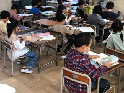 今日の朝の会は読書タイムでした。一人一人が読書したり、先生が読み聞かせをしたりと様々ですが、読書タイムを楽しんでいました。