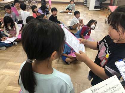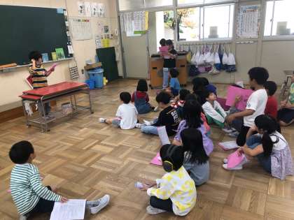 いよいよ2週間後に、学習発表会があります。各学年学級では、学習発表会に向けて子どもたちが一生懸命に取り組んでいます。1年生の教室でも、楽しそうにセリフや登場の仕方について練習していました。