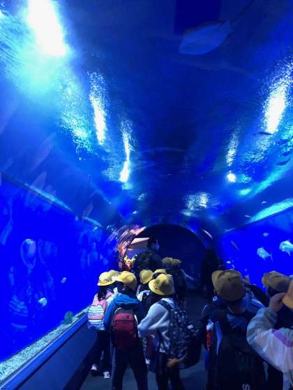 海遊館の中では、たくさんの魚たちが子どもたちを迎えてくれました。子どもたちはとても大喜びです。