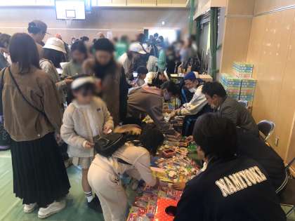 本校校区である、波除と市岡元町の2つの町会による合同の行事です。アメリカンドッグやポップコーンやくじ引き等の出店のほか、チアリーディングの演技等の舞台演技もありました。子どもたちだけでなく、保護者の方や地域の皆さま等、たくさんの来場者で大盛況のイベントになりました。
