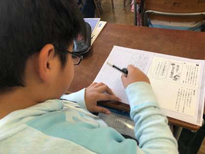はじめに元の文章を読んで、要旨を2つの段落の文章にまとめます。文章を読んで理解し、自分の言葉で表現します。そのときに、大事な言葉を抜け落とさないようにする練習です。