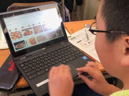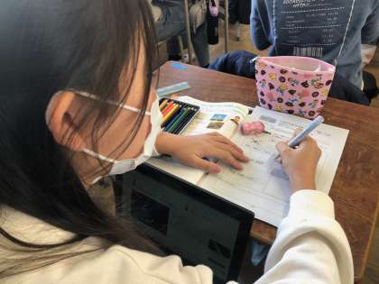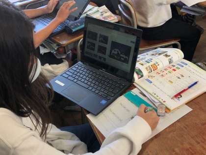 子どもたちは紹介したい国を選び、その国を表すものをネットで検索し、調べて分かったこととして発表します。