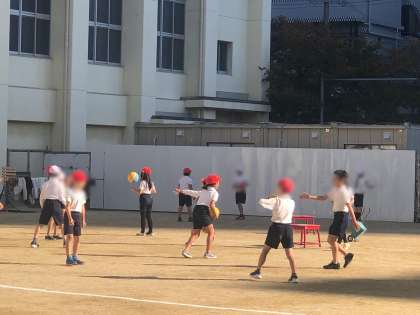 4年生の体育はポートボールです。授業の後半にゲームをする前に、パスの仕方のコツを学び、練習しました。きっと、ゲームの中で生きてくると思います。