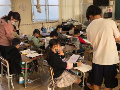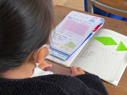 辺やちょう点という用語も習い、それぞれの図形に何個ずつあるのかを調べたり、実際に色紙を切って図形を作ったりしました。