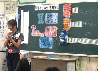 牛乳には、カルシウムやたんぱく質が含まれ、それぞれ、骨を丈夫にしたり血や筋肉を作ったりする働きがあります。また、これらが不足することで健康を損なうことについても学びました。