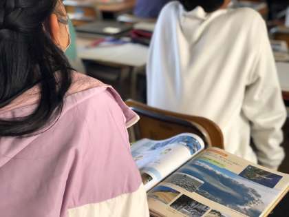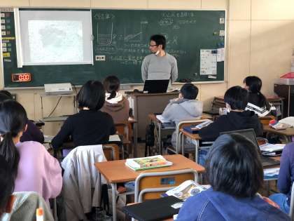 映像資料も見ながら、大地のつくりや地層のでき方などについて学習しています。