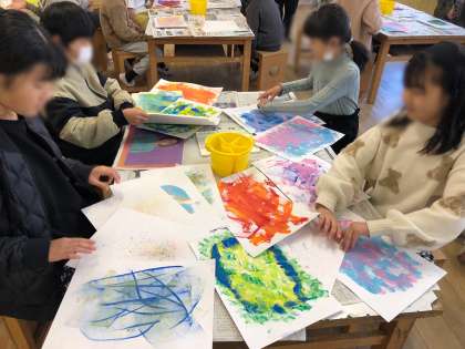 5年生の図工は、いろいろな技法を使って仕上げる作品の第一段階です。どんな作品に仕上がるのかとても楽しみです。