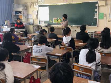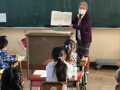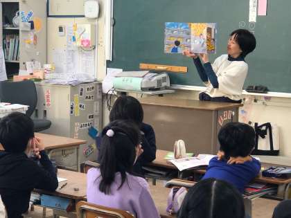 今日は、図書ボランティア『なみっ子』さんの日です。教室で図書の読み聞かせをしていただきました。
