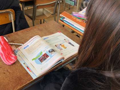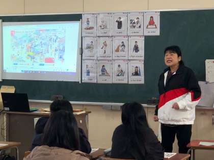 6年生の今日の英語は、「将来の夢」、なりたい職業とその理由を、英語で発表することです。英語での職業の言い方、理由を知り、伝え合いました。