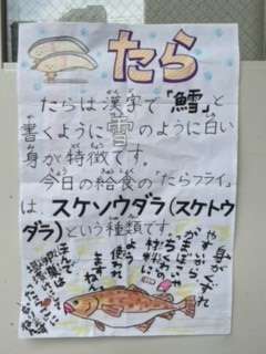 2月8日(木)、今日の給食は「たらフライ・うすくず汁・ほうれん草のおひたし・ごはん・牛乳」です。
