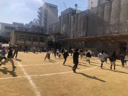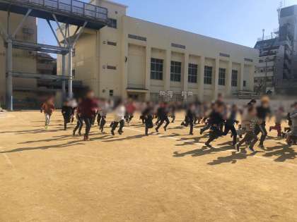 今日のかけあし運動は、2・4・6年生です。元気に走っています。