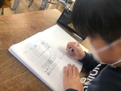 13日の火曜日。2年生では、算数で、はこの形を変えての学習をしました。この学習では、はこの形、つまり、面を意識できることが目標です。