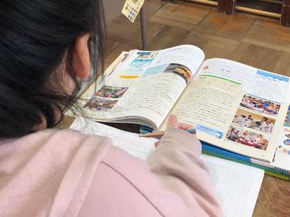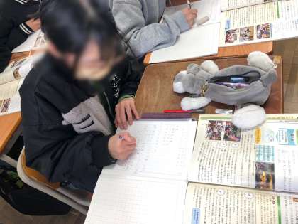 今日はアメリカです。一日の生活の様子、学校での様子について、日本とアメリカの生活の様子の違いについて教科書や資料集を活用して、調べる学習をしました。