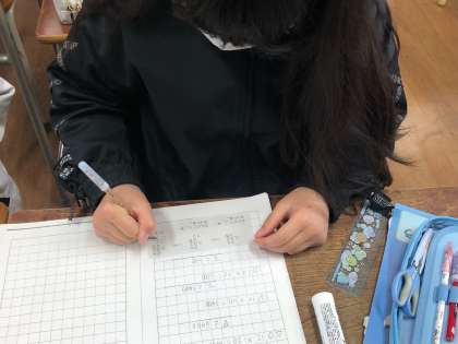 3年生は、3けた×2けたの筆算の学習のまとめをしています。
