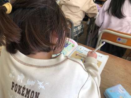 算数は、数についての学習から始まります。今日は、はじめて鉛筆を使って学習しました。教科書の2ページや3ページに直接鉛筆で書いていますので、ご覧ください。