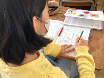 今日は、線対称、対称な軸、合同という語句を学習しました。