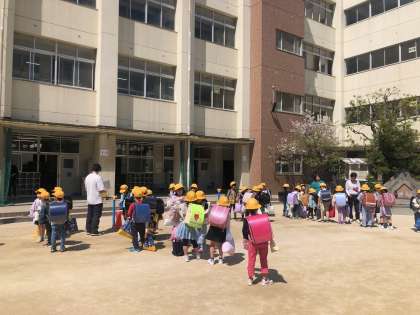来週末19日(金)は、分団別に下校します。家の近所に住んでいる上の学年のお姉さん、お兄さんと下校班を作って顔見知りになる機会です。