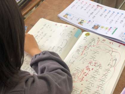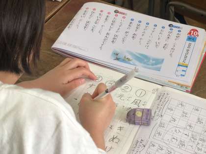 「とめ」「はね」「はらい」に気をつけて、丁寧に新出漢字を覚えていました。