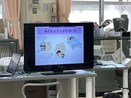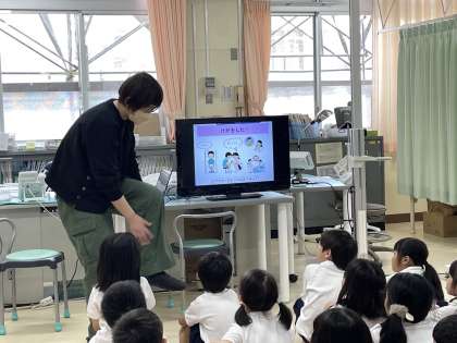 その前に、保健室の役割や保健室の利用の仕方について話を聞きました。1年生は、毎日少しずつ小学校について、新しい発見をしています。