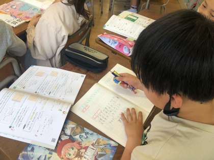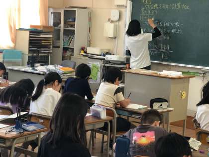 今日は、前時とは反対に、かける数を分けて計算しても答えは同じになることを図や式を使って考えました。