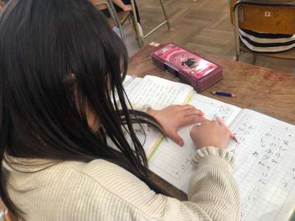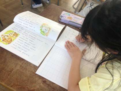 文中の語句に着目しながら、様子を思いうかべました。例えば、「すいすい はしります」のすいすいってどんな様子かな?とその言葉があるのとないのとでは、思い浮かぶ様子がちがうことも気づきました。