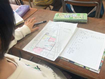 3年の社会は、昨日校区たんけんに出かけた、その後の学習です。