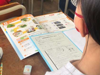 5年の家庭科は、来週にする調理実習に向けた学習です。