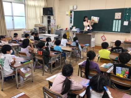 朝から、1年・3年・5年の教室で読み聞かせをしていただきました。特に、1年生は大喜びでした!