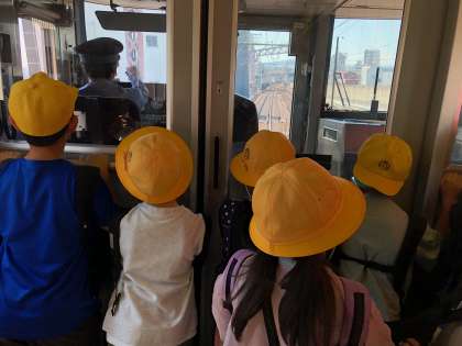 阪和線車内でも静かに過ごしています。楽しみな遠足がスタートします!