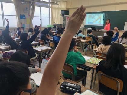 5年の家庭科は、「調理の流れを知ろう」の学習です。青菜を茹でるという次の調理実習に向けて学習しています。