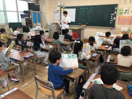 1年の国語は、ひらがな「お」「わ」の学習、ひらがなを使ったことばを学習しました。その後、「みんなにはなそう」という学習です。