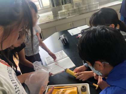 今日は、気体検知管を使って、気体の成分の変化を調べました。