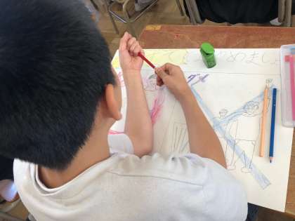 6年の図工では、「社会を明るくする運動」コンクールに出展もかねてポスター制作に取り組んでいます。
