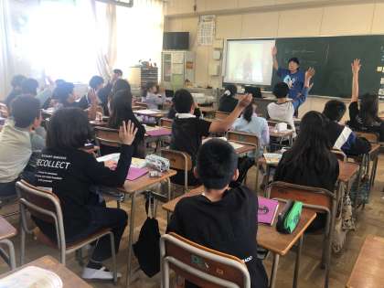 I'm ○○. I like ○○. 自分の興味や関心を伝えるために内容を整理して自己紹介をする学習をしました。