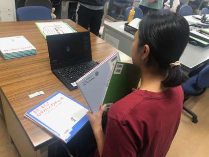 担当の先生から、図書の紹介がありました。きれいにリフォームされた図書室をたくさん利用してほしいです。
