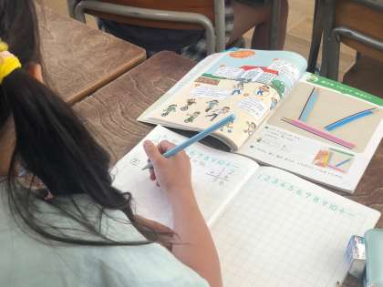 たし算か、ひき算かを問題を読んで考え、ひっ算を使って間違えないように答えを求めます。最後には、自分で問題を作りました。