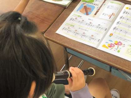 3年の音楽は、リコーダーです。「シ」の音の曲を練習しています。いい音が出てきました。