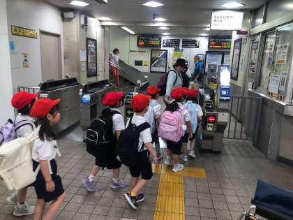 今日は1年生の遠足。場所は扇町公園です。環状線で弁天町から天満へ向かいます。