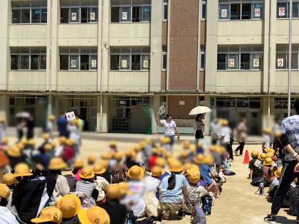 子どもたちには、波除小学校の500人を超える命をすべて守り抜くための大切な訓練であるという話をしました。また続けて、災害発生時にどうするのかを、家族とよく話し合っておきましょうという話もしました。