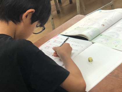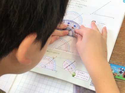 今日は、分度器を使った角度の測り方について、確認しました。分度器の中心を頂点にきちんと表すことや0度の線を角度を測る辺に合わせること等について、おさらいしました。