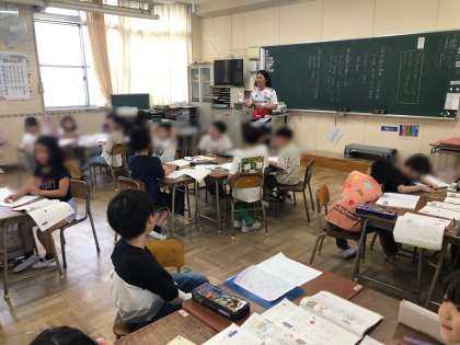 外国の地名や外国の人の名前、外国からきたことば、ものの音や動物のなき声等はかたかなで表すことを学習しました。子どもたちはノートにたくさんのかたかなで表すことばを見つけ出していました。