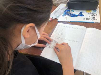 4年の算数では、「分度器を使って三角形をかこう」という学習です。